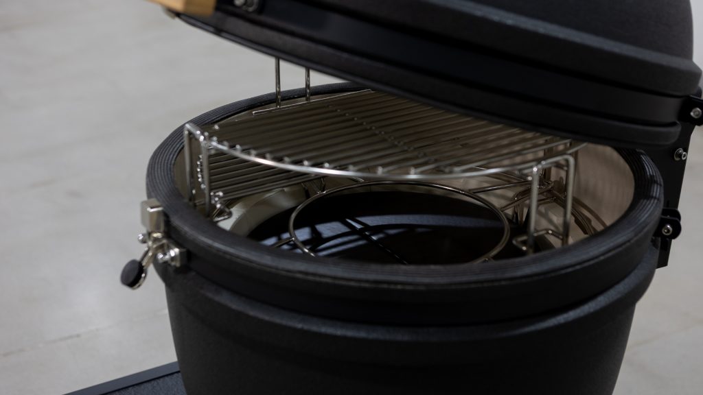 El kamado Brabura Bison 23 permite regular el flujo de aire con gran precisión, manteniendo temperaturas bajas para cocciones lentas o alcanzando altos niveles de calor para sellados potentes. Este control se traduce en cocciones uniformes y repetibles, incluso durante largas sesiones.